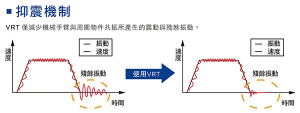 但需要特別釐清的是,抑振技術無法讓振動完全消失,因為振動產生的根源是慣性,這是無法完全消除的。抑振技術只能縮短振動持續的時間,讓手臂更快執行下一個動作(圖2)。