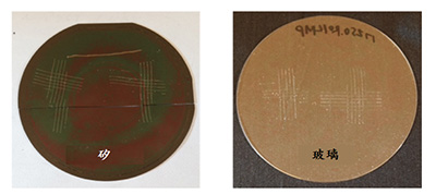 PCT聚合物顯示出對許多材料(包括其他聚合物)的黏著性。例如,將組合物PCT 1的溶液旋轉塗佈在矽和玻璃晶片上,再置於高溫板上以120℃烘烤10分鐘,隨後在烘箱中以130℃烘烤30分鐘,去除溶劑並留下乾燥的薄膜。接著,使用最高黏著強度的3M測試帶,對有刻痕的薄膜進行標準交叉陰影帶拉伸測試。圖2中的測試基材圖像,基材都沒有像素特徵消除的情況,表示PCT材料對矽和玻璃具有優異的黏著性。