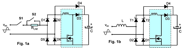 二極體整流橋的缺點是無法控制浪湧電流,這是因為在插入市電插座時,直流輸出電容會突然充電。