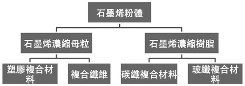 針對複合材料應用,依據熱塑性工程塑膠與熱固性纖維材料製程與材料特性的不同,分別採用石墨烯濃縮母粒與石墨烯濃縮樹脂是現階段最能夠與生產製程匹配的石墨烯添加方式(圖1)。