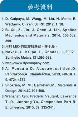然而,不論選用何種填充劑,都必須添加相當比例的填充劑,熱傳導值才能有顯著提升,因而使得塑膠材料原有的機械特性優勢消失,例如材料的耐衝擊性降低或造成脆化。因此,如何避免顧此失彼,至今仍是導熱塑膠材料研發領域中的一項重要課題。
