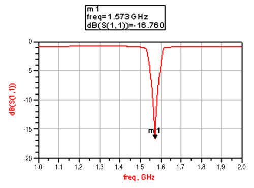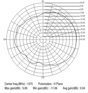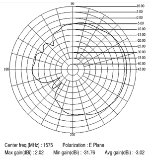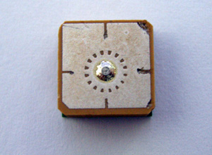 這次實驗所使用之天線是12毫米×12毫米×3.5毫米的陶瓷平板天線,其用網路分析儀量測之Return Loss(S11),如圖7所示,電磁場圖顯示可對照圖8~10。而圖11是天線整合於晶片GPS SiP的原型,尺寸是12毫米×12毫米×5毫米,使用12毫米×12毫米×3.5毫米的陶瓷平板天線。就實際量測其載波雜訊比(C/N)比數據來看,天線整合於晶片GPS SiP的值是比將天線擺放在GPS SiP旁邊差1~2分貝(dB)。但定位時間,如熱開機(Hot Start)、冷開機(Cold Start)、暖開機(Warm Start)的時間都在可接受的範圍內(表1)。