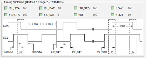 I2C匯流排會規範串列時脈(SCL)與串列資料(SDA)必須按規定時間送出,不然整個匯流排的行為將會發生錯誤,導致通訊失敗。有時候實際波形的時間已經超出規格,但卻無法在開發及驗證的過程中被挑出來,因為時間誤差都不大,使得產品雖然仍可正常使用,但問題常常會留到量產時才顯現出來,造成產品不良率攀升,甚至到使用者手上才出現問題。上述這些問題都是產品開發所不願樂見的結果。