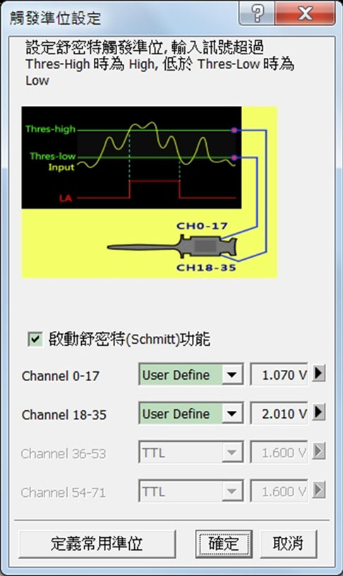 圖6 邏輯分析儀採舒密特電路觸發模式示意圖 |