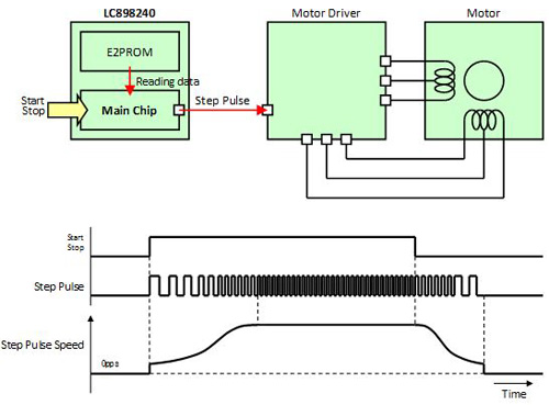 LC898240作為配套元件連接到傳統的馬達驅動器,能擴展步進馬達的控制功能。