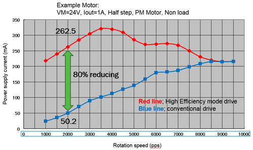 LV8702V整合方案的高能效導通模式與傳統驅動方式的高能效關斷模式的性能比較,顯示高能效模式驅動可降低達80%的功耗,如圖4所示。