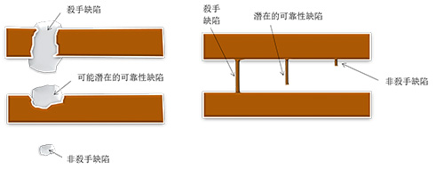 事實上,對於設計良好的製程和產品而言,早期的晶片可靠性問題(外在可靠性)以隨機缺陷為主。殺手缺陷(影響良率的缺陷)是導致元件在時間t=0(最終測試)失敗的缺陷。潛在的缺陷(影響晶片可靠性的缺陷)是導致元件在t>0(在老化之後)發生故障的缺陷。