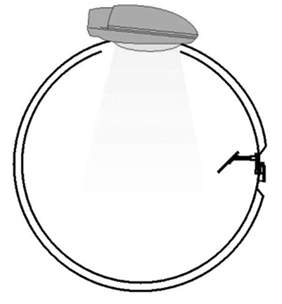 量測的方法是,受照面的照度一般以照度計進行量測直接讀值。因以不同角度入射到受照面產生的實際照度符合照度的餘弦法則(E0=E Cosα),因此照度探測器前端一般已加白色餘弦修正器。 |