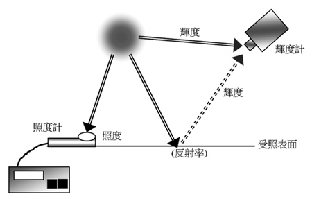 其量測的方式是光源或被照面的亮度以亮度計直接進行量測(圖12)。
