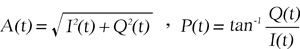 其中I(t)及Q(t)表示正交訊號,而A(t)為封包訊號,P(t)為相位訊號。