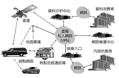 | 資料來源:US DOT VII、拓墣產業研究所 圖1 VII系統之車內資訊網路 |