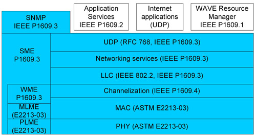 IEEE1609標準由IEEE汽車技術學會智慧型運輸系統委員會發起,主要為支持美國運輸部的汽車基礎設施活動和智慧型運輸系統項目提供無線通訊元件。這些試用標準計畫將根據實驗結果進行更新,擬於2008或2009年成為正式使用的標準(表1)。