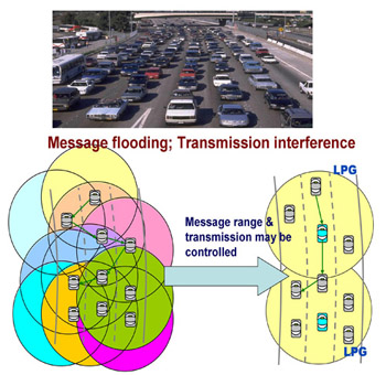 當多數車輛皆安裝具備車間通訊功能之車載機行駛於道路上時,每輛車所提供的通訊電波無形中形成了一個高動態、高變化且極為複雜的通訊網路,此時任何一輛車隨時隨地皆有可能發送自身資訊給其他車輛,或是接收來自於周遭數量可觀的「鄰車」所發出的資訊。