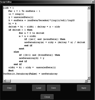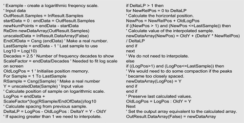 | 圖6 示波器的程式語言編輯視窗,可透過此編輯視窗撰寫程式語言,所以喚起運算選單語法立即被執行,此為VB範例。 |