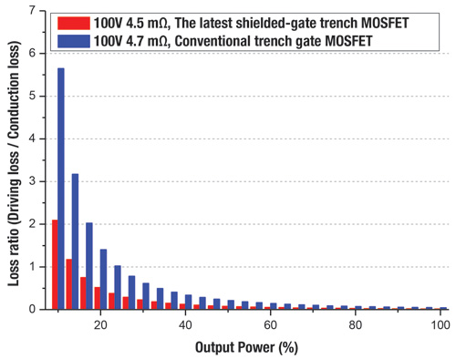 | 圖2 不同輸出負載條件下損失比(驅動損失導通損失)的比較 |