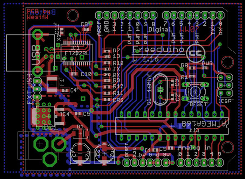 | 圖4 1.16版的Freeduino實體線路布局圖