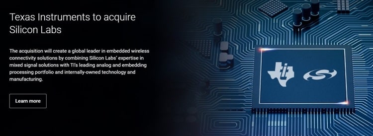 美國當地時間2月4日,類比晶片及嵌入式處理器廠商德州儀器(TI)正式宣佈收購芯科科技(Silicon Labs)。根據雙方簽署的最終協議,德州儀器將以每股231.00美元的價格,溢價約五成,全現金收購Silicon Labs,交易總價值約為75億美元。