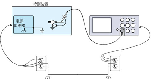 | 圖1 將示波器探棒地線連接到待測電路上,如果電路「接地到」接地裝置,那麼會產生接地迴路。 |