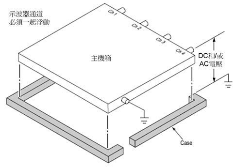使用AC電源線及標準三線電源線操作時,所有接地輸入通道、電池供電的示波器表現出來的局限性與傳統示波器一樣。然而在使用電池操作時,這些示波器可以一次進行高達30VRMS的單一安全浮動量測;記住,所有輸入共同源都捆綁在一起。