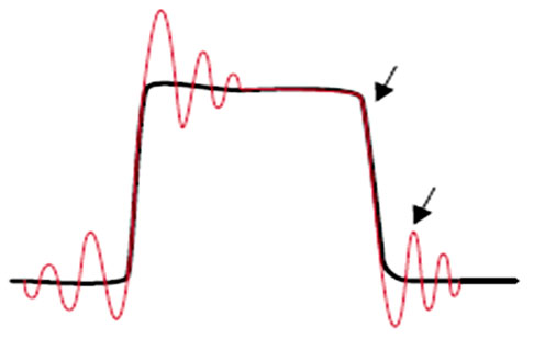 | 圖6 寄生電感和電容導致的振鈴使訊號失真,使量測無效。 |