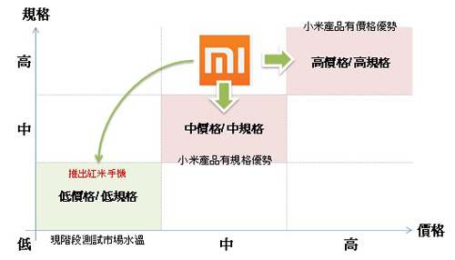 | 資料來源:資策會MIC,10/2013 圖1 小米產品競爭策略 |