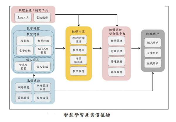 事實上,隨著線上學習平台掀起風潮,整體智慧教育產業可以說是雨露均霑,包括補教業、數位內容、教育科技、數位科技等業者均明顯感受到線上學習與數位教育相關領域的需求,紛紛合作打造線上直播課程、科技設備輔助教學工具、智慧課室等解決方案,發掘國內外智慧學習產業的新機會。