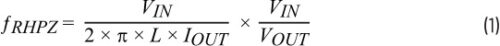 本設計實例的目標為建立一個電路, 其VIN範圍為6V至18V,VOUT為13V, 負載為2.5A,需儘量減少輸出電容, 而且要使VOUT pp在±5%以內。若要將輸出電容最小化,可先選擇2.1MHz的開關頻率。在2.1MHz頻率下,電感值通常選用1μH。VOUT限值允許650mV的瞬態波動。為估算所需的輸出電容,首先需考慮最壞情況的VIN,這種情況會使電路處於升壓區域。在升壓區域中, RHPZ可透過公式1計算。