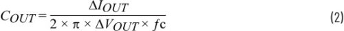 透過求解RHPZ並將其除以5,可將升壓區域的交越頻率設定為35 kHz。輸出電容可透過公式2進行估算。