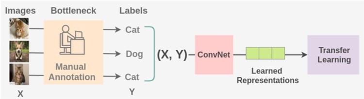 分類演算法甚至能將文字內容歸類,例如:按照情緒分類,可區分成好情緒或壞情緒;或按照主題分類,可區分成運動、政治、音樂等。此外,分類演算法也被用來檢測癌症。使用分類演算法得出的可能結果的數目很少,例如:0或1。而迴歸演算法輸出的可能結果數目非常多。圖3是一個典型的監督式學習的架構,其中,人為的資料標註是監督式學習的最大瓶頸。