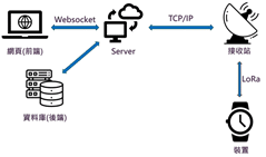 本系統使用LoRa模組作為穿戴式裝置與接收站之間的溝通方式,且穿戴式裝置將數據傳輸到接收站時,能一併取得訊號強度。透過訊號強度,可判斷使用者是否依比賽規劃之路線進行比賽。這種設計方式,除了可傳輸使用者資料,同時也能把接收站當作檢查點使用。