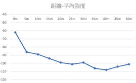 圖17為本系統測試的LoRa距離-訊號強度關係圖。其中,X軸為距離單位公尺,Y軸為訊號強度單位dBm。當發送端發送資料時,訊號強度值越高,表示發送端距離接收站越近。反之,表示訊號強度值越低,表示發送端距離接收站越遠。