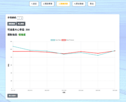 圖21則是選手健康狀態頁面,在選擇對應運動員穿戴式裝置編號時,可個別顯示此運動員的生理狀況,包括可達最大心率、目前運動強度與心率血氧折線圖等。圖22則為歷史數據頁面,會顯示記錄過的賽事資訊。
