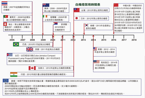 | 圖1 各國禁用白熾燈泡時程表 資料來源:LEDinside(03/2013) |