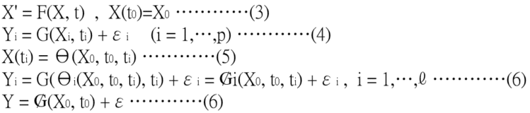 公式(3)是非線性的一階微分方程式,其中,X不只包含衛星的位置、速度,還包含一組隨時間變化的參數;F是力向量,X0是在初始時的已知狀態向量。觀測衛星軌道的結果可以用公式(4)表示。Yi是表示在t1到tp中間的一個時間點或曆元(Epoch)所觀測到的結果,εi代表隨機的測量誤差,G(Xi, ti)才是正確的觀測值。使用公式(5)可以求出公式(3)中的X的解。只要Θ函數是已知的,輸入(X0,t0,ti)後,就可以使用分析法或數值法求出公式(5)中X(ti)的值。