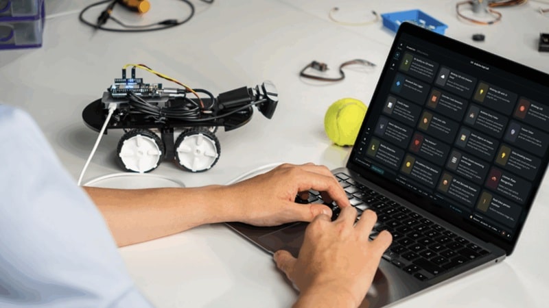 接著是軟體開發工具方面,原有的Arduino IDE(更嚴謹說是第二代IDE,稱為Arduino IDE 2)依然是安裝在電腦上撰寫程式,程式完成後傳送到STMicro STM32U585晶片上執行,Arduino IDE過往最初只能執行C/C++風格的程式,近幾年來也開始能執行Python程式。
