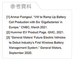 以ADI的模組化與可擴充wBMS系統平台為例,該平台可協助OEM廠商以完全自動化方式組裝電池組。在消除(訊號)纜線後,電池模組唯一需要的連結就是供電接頭,也可透過自動化生產線的機器手臂進行組裝。藉由精簡人力需求,OEM廠商還能降低生產線人員的安全風險(圖2)。在通用車廠實作的wBMS技術案例中,Ultium電池模組的可擴充架構亦協助通用降低電池組的成本。雖然Ultium電池是在2021年首度亮相,但模組先前已經部署在通用旗下眾多車款,包括重型車款和多地形越野車,以及豪華、一直到小型車款。正如通用車廠全球電動化與電池系統部門經理Kent Helfrich在2020年9月在媒體發表會上所述,擴充性以及降低複雜度是Ultium電池強調的主軸,而無線管理系統更是促成如此應用彈性的關鍵因素。