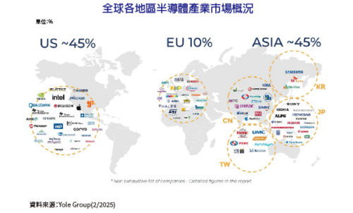 Yole Group首席分析師Pierre Cambou表示,在這些令人印象深刻的市場資料背後,巨頭們正活躍於這個遊樂場。在2024年,全球前35大半導體公司占據了整個產業營收規模的80%,許多知名品牌正在重新定義這個產業。
