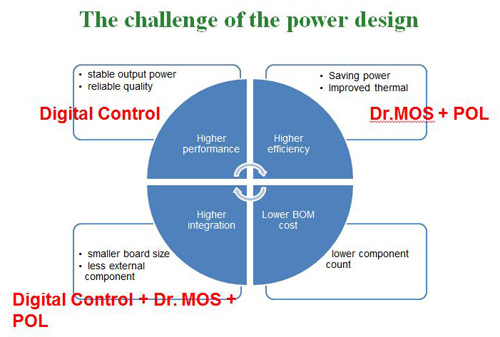 據了解,複雜的電源設計,如中央處理器(CPU)可能需要三至六相的電源,搭配上二至三個電源軌(Power Rail),在複雜且不同的電源軌和相數配合的要求之下,數位電源都能做出最好的搭配方式。