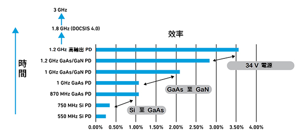 GaN技術將持續發展,而GaAs和GaN技術使功率放大器設計人員能夠利用不斷優化的GaAs基和GaN基半導體的最新發展,以應對和超越DOCSIS 3.1和DOCSIS 4.0所要求,更大頻寬和更高線性輸出的嚴峻挑戰。
