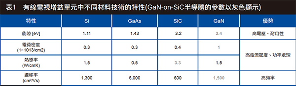 如Qorvo便推出採用GaN-on-SiC的有線電視增益單元,很快就成了高性能的理想技術。