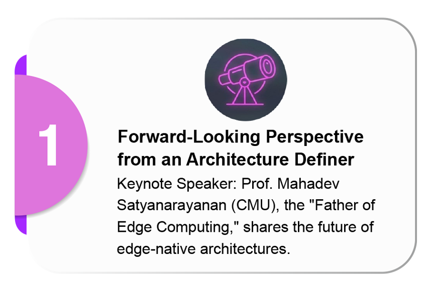 | 09:30~10:10 | Keynote Speech: The Evolution of Edge-Native Systems: the Journey to Real-Time Mobile AI | Mahadev Satyanarayanan Jaime Carbonell University Professor of Computer Science, Carnegie Mellon University |