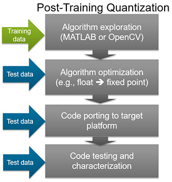 CNN的訓練過程包括指定特定結果的加權向量,並對該等結果施行適性濾波以判定該輸入的陽性、偽陽和陰性部分。指定權重又稱為量子化程序,其發生分為兩種流程: