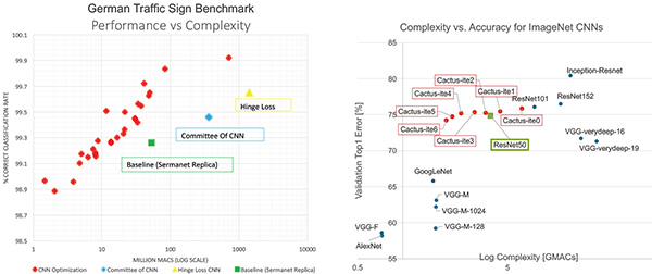 再者,此程序可付諸自動化。名為CactusNet的通用性超集合網路架構,可漸次優化分析以取得所需的靈敏度。CactusNet若與GTSRB搭配,可產生優異成果。CactusNet的辨識率不亞於其他知名系統,卻能將複雜度降低兩個數量級。
