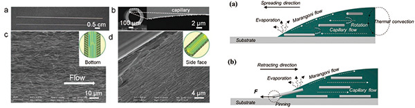 奈米銀線是高長徑比的材料,在自由運動過程中容易有序化的排列。實驗顯示,將奈米銀絲懸浮液通過數百微米的毛細管就能使奈米銀有序排列;此外,懸浮液中的奈米銀線會在成膜時,由於溶劑揮發帶來的局部擾動使奈米銀線有序排列,如圖13所示。