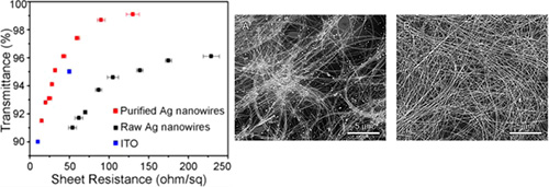 綜合上述奈米銀線特性對於面電阻、光穿透度與霧度的光電特性影響分析可知,較長、較細、純度高的奈米銀線,有助於製造低面電阻、高光穿透度與低霧度的軟性奈米銀線透明導電膜。因此,奈米銀線墨水供應商無不極力研發高長徑比與高純度的奈米銀線材料。